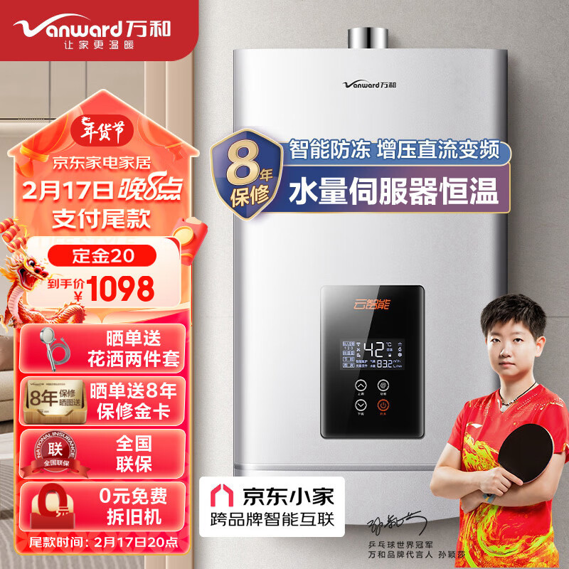 万和(Vanward)13升燃气热水器京东小家智能生态天然气智能防冻 直流变频 增压水量伺服器恒温 JSQ25-560J13价格:1248.00元!