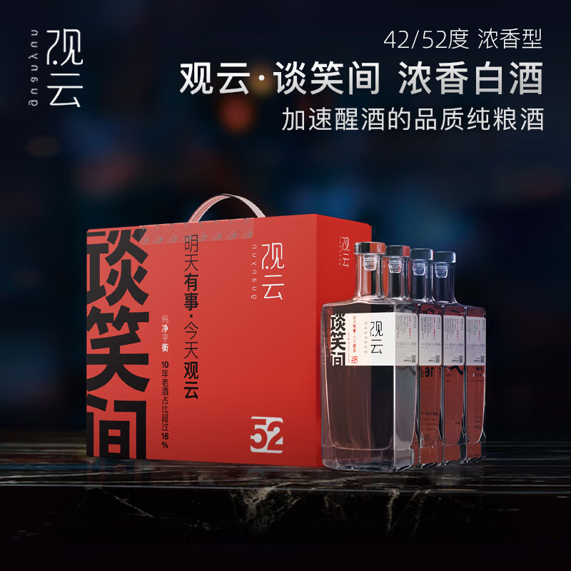 观云经典谈笑间 浓香型白酒 52度 500ml单瓶 纯粮酿造 送礼自饮价格:89.00元!