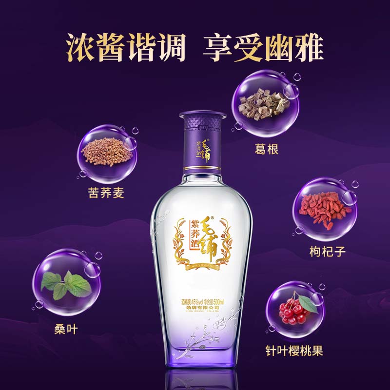 劲牌 毛铺苦荞酒 露酒 紫荞 45度 500ml价格:258.00元!