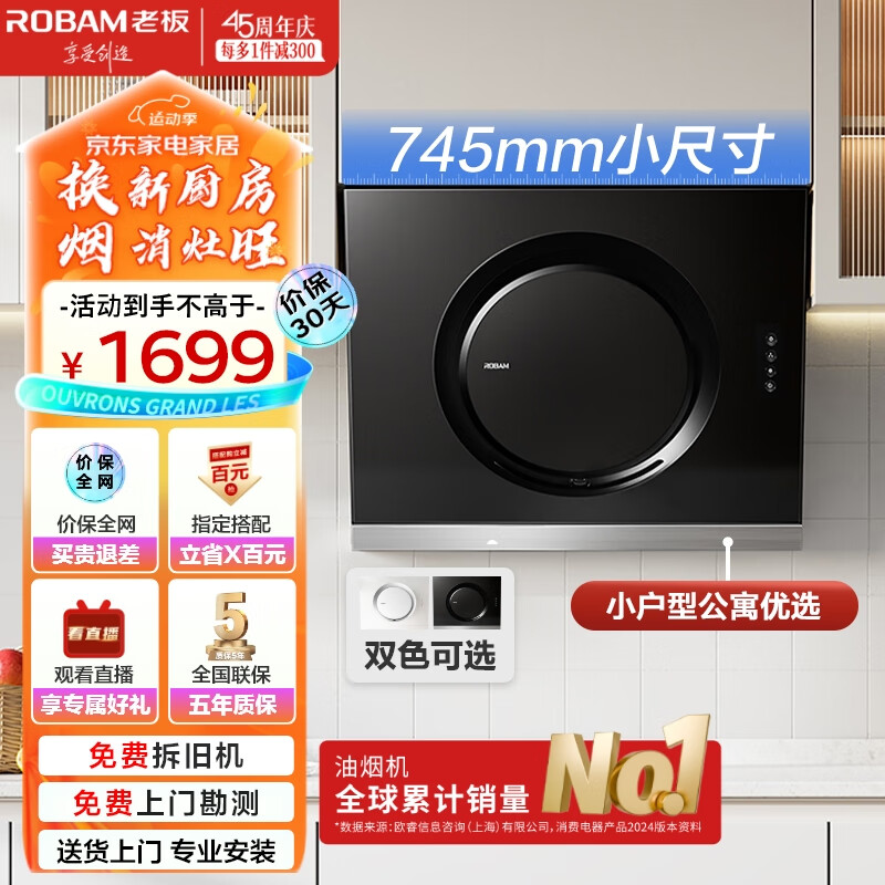 老板(Robam)抽油烟机小户型油烟机家用侧吸小尺寸吸油烟机免拆洗易洁排油烟机以旧换新21A5H价格:1699.00元!