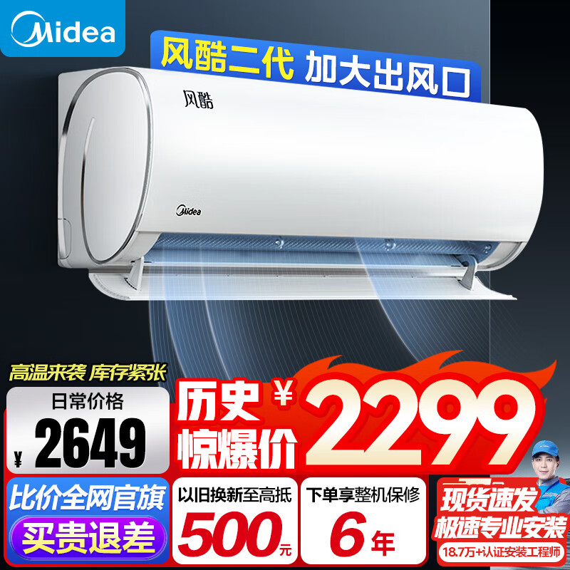 美的(Midea)大1.5匹新一级能效空调风酷二代京飒同款变频冷暖自清洁家用壁挂式卧室挂机空调智能家电35XHC1Ⅱ价格:2299.00元!