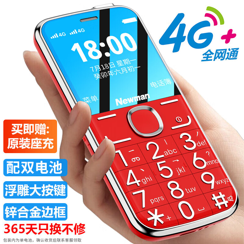 纽曼(Newman) M5 红色 4G通老人手机 超长待机双卡双待大字大声音大屏幕大按键老年机 学生儿童备用功能机价格:162.00元!