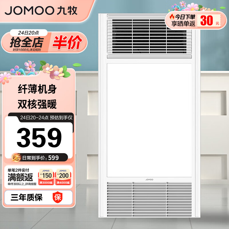 九牧(JOMOO)浴霸集成吊顶多功能取暖器 四合一双核多功能JDE14-21110/2M31-3价格:409.00元!
