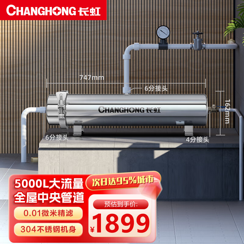 长虹(CHANGHONG)全屋中央管道净水器家用直饮超滤净水机前置农村井水别墅自来水过滤器大流量商 全屋中央管道【5000L大流量】价格:1999.00元!