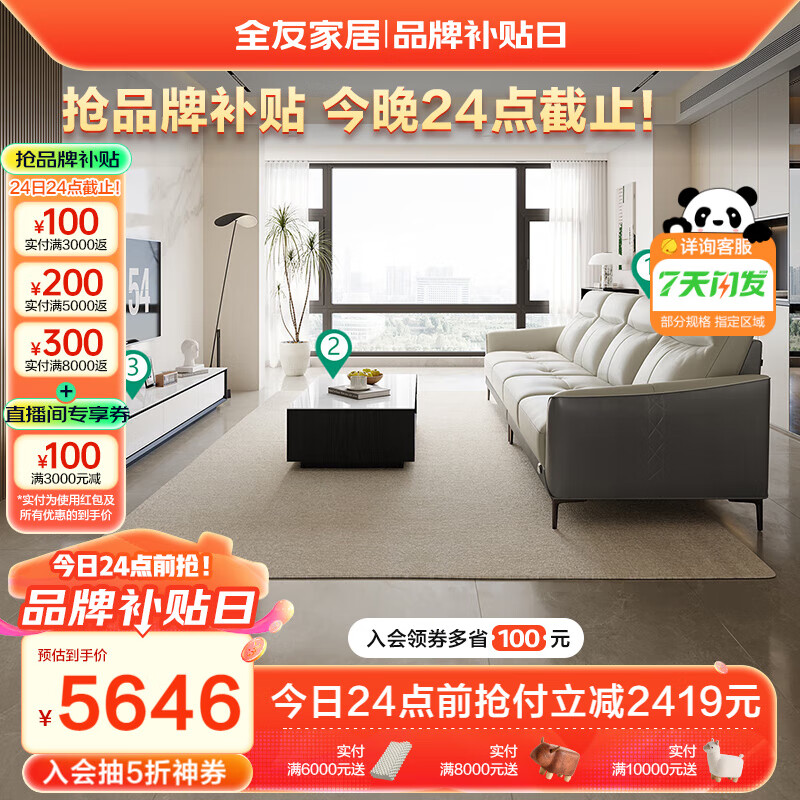 全友家居 简约客厅3件套装102710皮沙发岩板茶几电视柜主柜客厅家具价格:8065.71元!