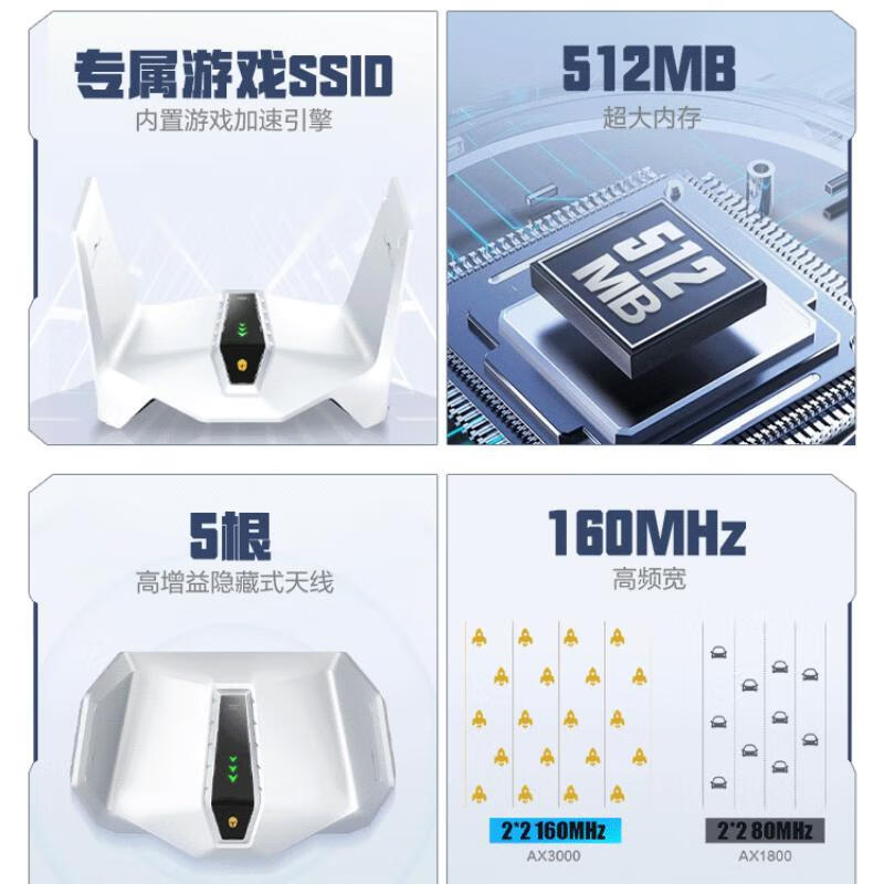 雷神(ThundeRobot)X3白满血WIFI6 千兆无线路由器 5G双频 Mesh 3000M无线速率 5根天线 游戏加速穿墙王价格:229.00元!