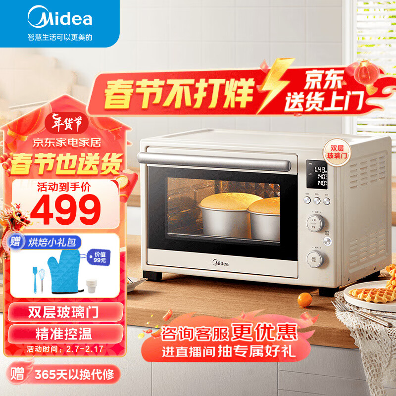 美的 遇见Q10-D系列烤箱 35L家用多功能电烤箱 双层玻璃门/搪瓷内胆/精准控温/热风烘烤 PT3530W-D价格:499.00元!
