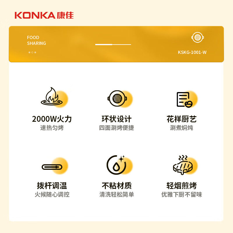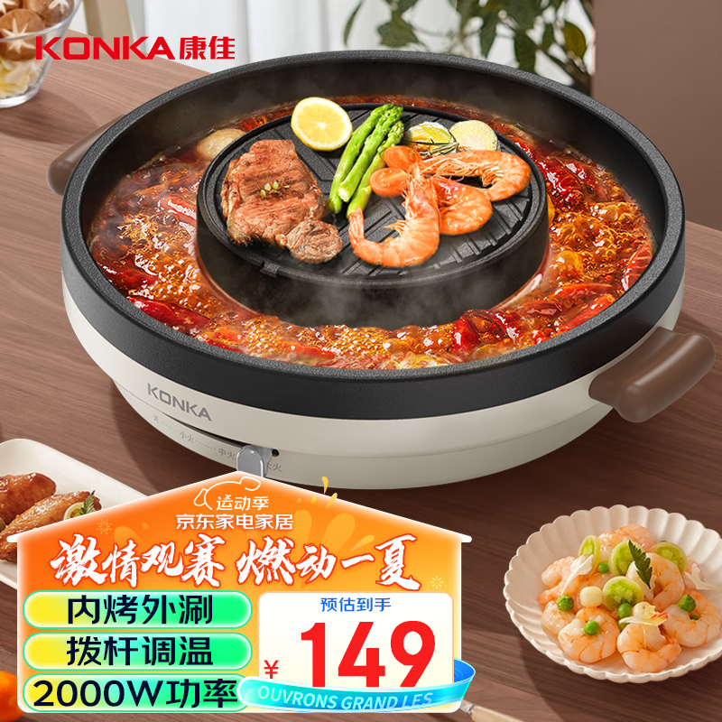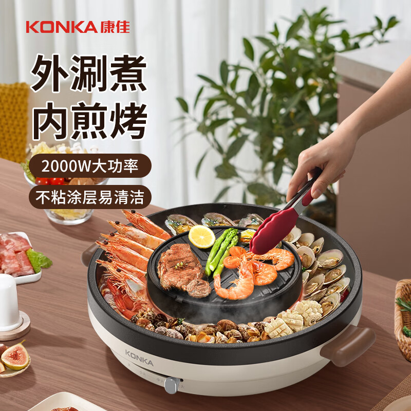 康佳(KONKA)烤涮一体两用锅烤肉盘烤肉锅电烤盘烧烤家用多用途电火锅电烧烤炉烤肉机 KSKG-1001-W价格:149.00元!