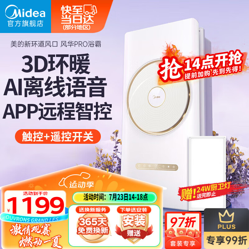 美的(Midea)浴霸风暖集卫生间成吊顶暖风机浴室智能环形双电机语音双控取暖器价格:1299.00元!
