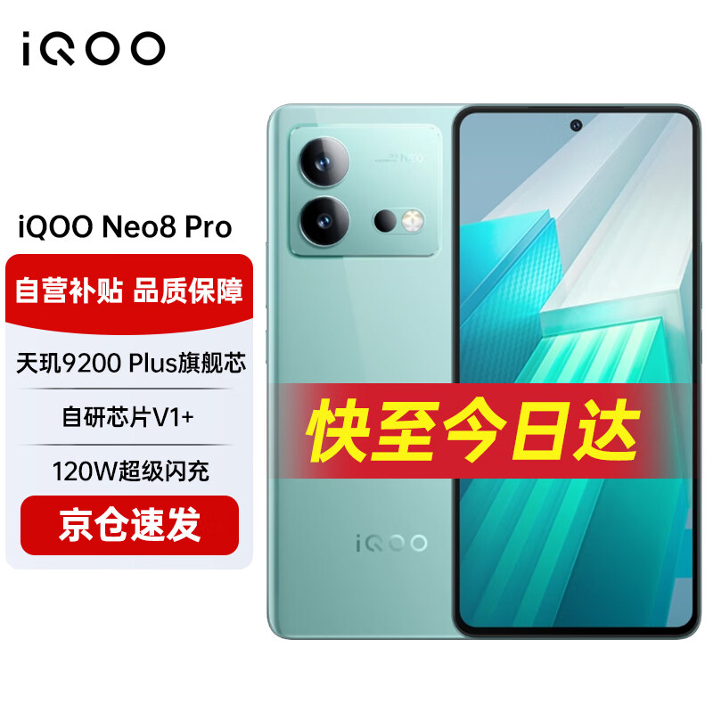 vivo iQOO Neo8 Pro 16GB+512GB 冲浪 天玑9200+120W超快闪充 144Hz高刷 5G游戏电竞性能手机价格:3399.00元!