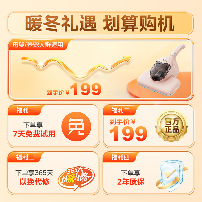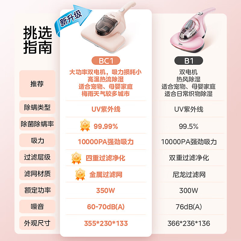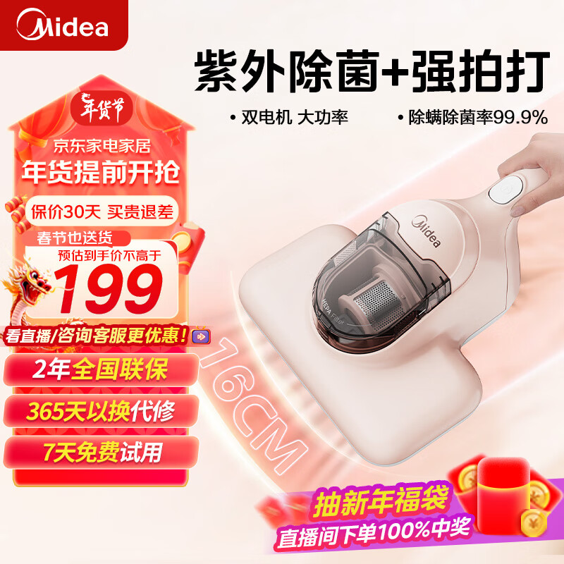 美的(Midea)除螨仪家用手持BC1床铺除螨虫紫外线杀菌 热风除湿清洁电器 床上吸尘器价格:189.00元!