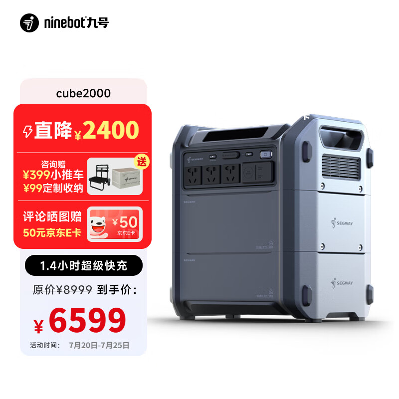 Ninebot九号户外电源2度电Segway Cube2000大功率2200W停电应急移动储能备用车载自驾露营磷酸铁锂价格:6599.00元!