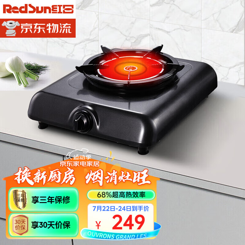 红日(RedSun)红外线灶台式燃气灶单灶猛火无烟无焰不黑锅底童锁保护蜂鸣提醒 68%热效率 JZY-108D 液化气价格:249.00元!