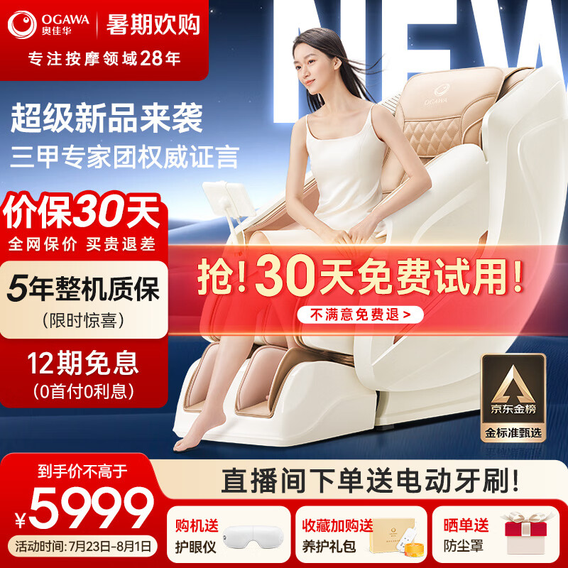 奥佳华(OGAWA)2024按摩椅十新品家用太空舱全身零重力电动智能按摩中医推拿小户型豪华头等舱椅子7508Pro 浅香云杏价格:8999.00元!