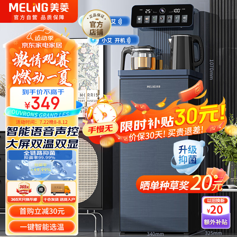 美菱(MeiLing)智能语音茶吧机家用多功能遥控大屏立式下置式一键选温自主上水饮水机温热款MY-C933(语音款)价格:379.00元!