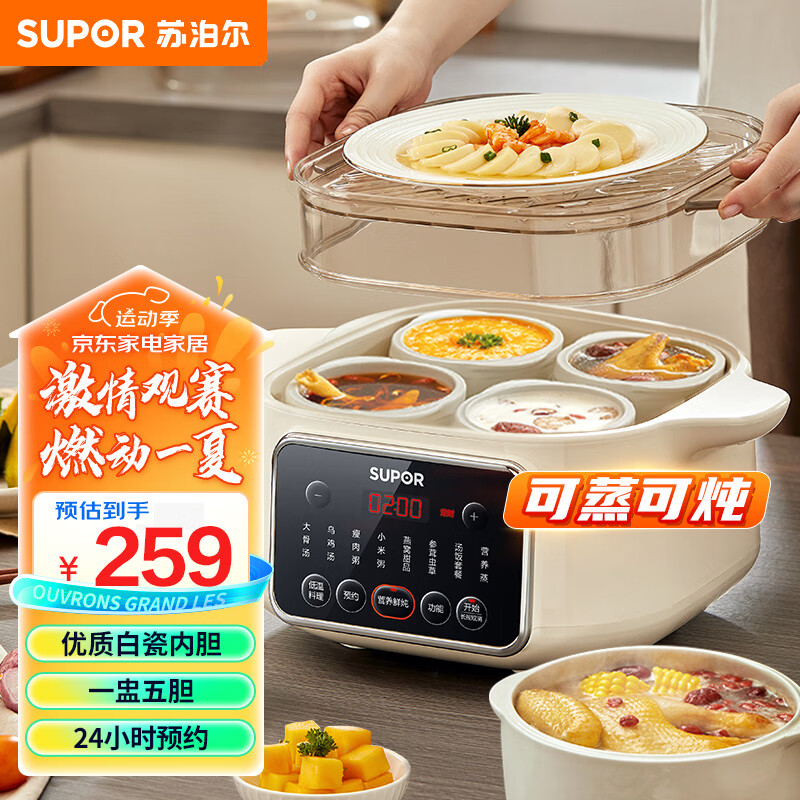 苏泊尔(SUPOR)电炖盅 电炖锅 隔水炖煮 家用煮粥煲汤锅燕窝炖盅 白瓷内胆炖汤锅上蒸下炖DZ25FC859 2.5L价格:259.00元!