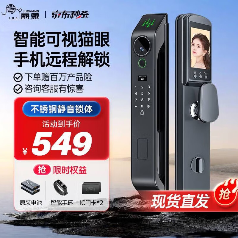 爵象智能门锁 指纹锁密码锁电子锁 异形锁免费升级 不锈钢静音锁体+价格:498.00元!