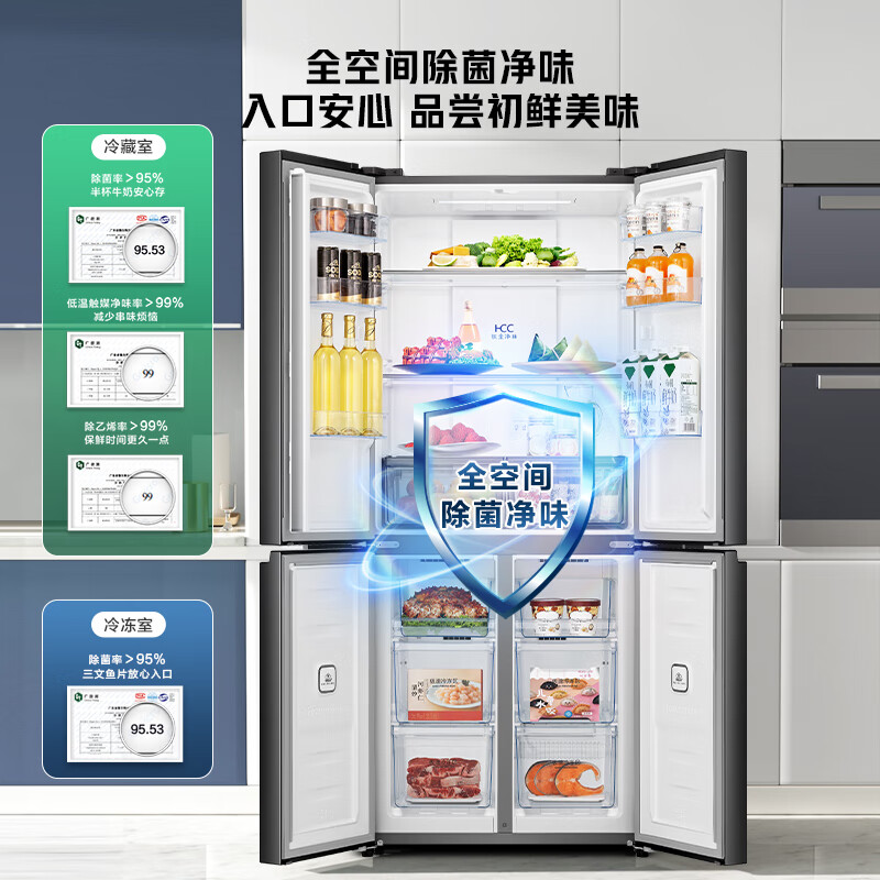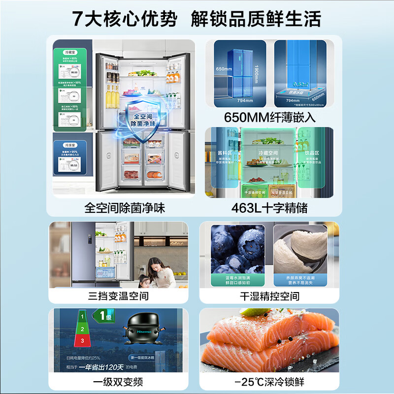 海信(Hisense)四开门冰箱十字门 463升超薄无霜冰箱一级能效大容量双变频BCD-463WMK1DPJ-冷藏冷冻除菌净味价格:2799.00元!