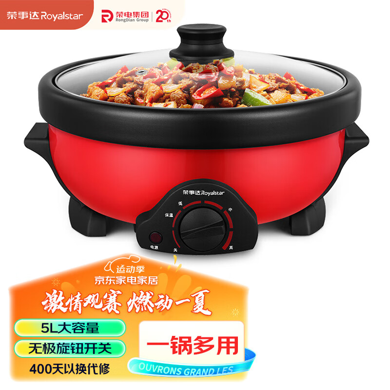 荣事达(Royalstar) 电火锅分体式5L家用多功能电热锅电煮锅电炒锅RHG-50D价格:149.00元!