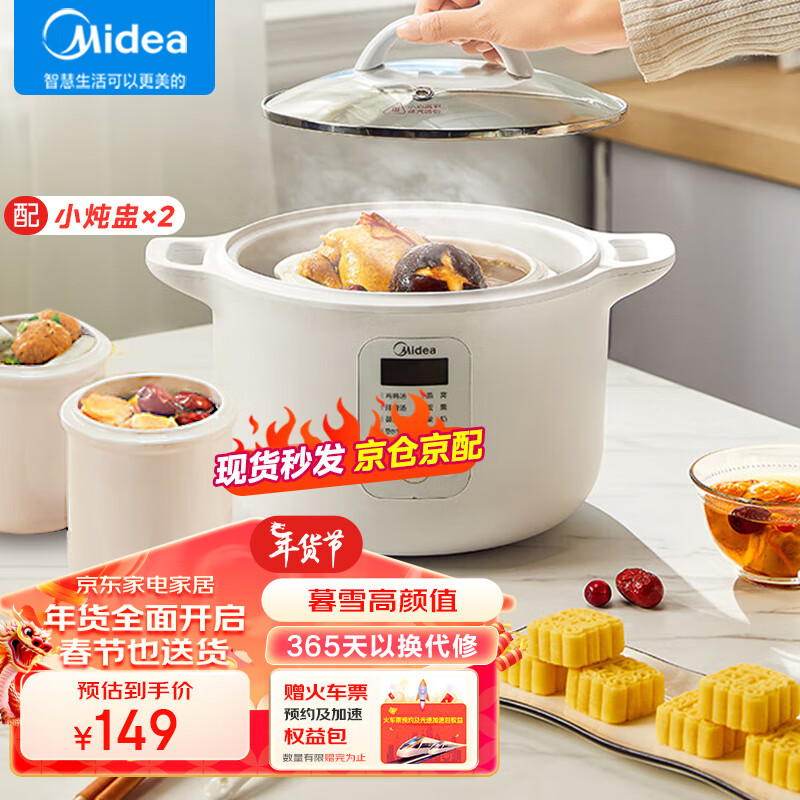 美的(Midea)电炖锅 电炖盅 隔水炖锅 煲汤锅 燕窝炖盅 炖汤锅炖汤盅 年货送礼赠老人送长辈DZ16E102 1.6L价格:149.00元!