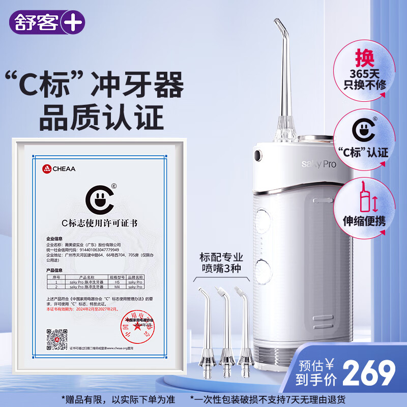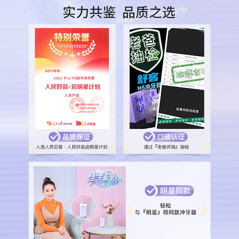 舒客冲牙器洗牙器水牙线 全身水洗伸缩便携 大容量水箱 3种专业喷嘴H5 流光白 父亲节礼物价格:419.00元!