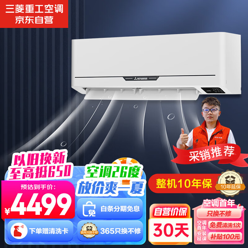 三菱重工14-22㎡ 新二级能效1.5匹 变频冷暖 三菱空调挂机 WIFI云省电SRKMH35以旧换新线下同款35GW/MTVBp价格:4499.00元!
