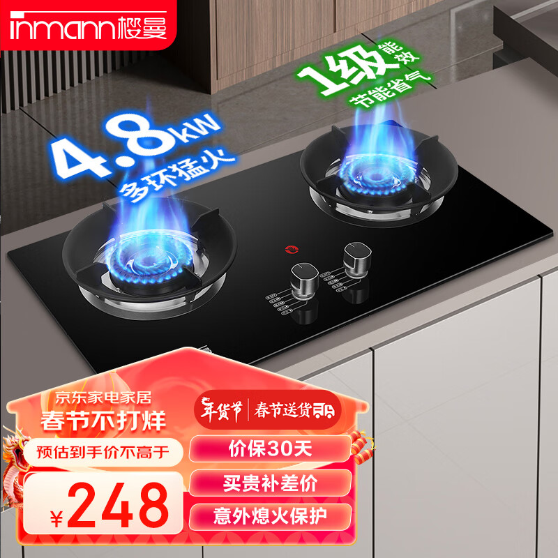 樱曼 燃气灶 煤气灶 聚能双灶 家用台嵌两用 大火力猛火爆炒钢化玻璃单炉具 JZT-K108(天然气)价格:248.00元!