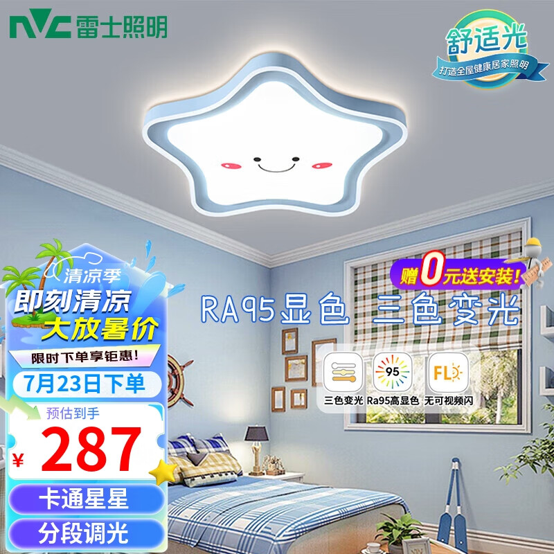 雷士LED温馨卧室吸顶灯具 儿童灯浪漫可爱 星月童话-萌趣星星价格:359.00元!