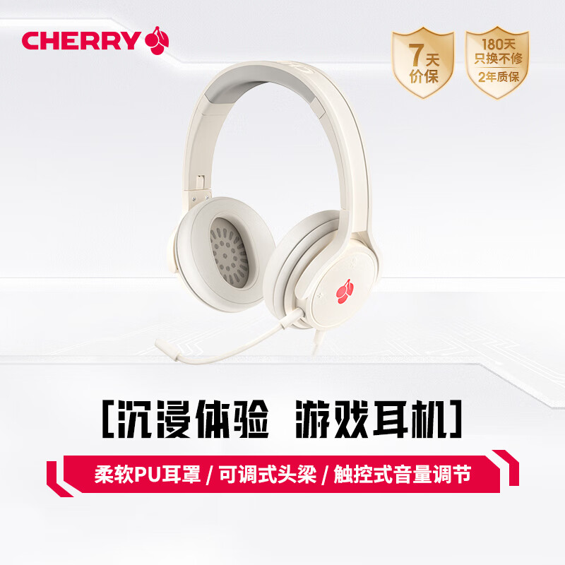CHERRY樱桃(CHERRY)HC2.2 游戏耳机 7.1环绕音效 头戴式耳机 电竞耳机 LOGO灯效 白色价格:199.00元!