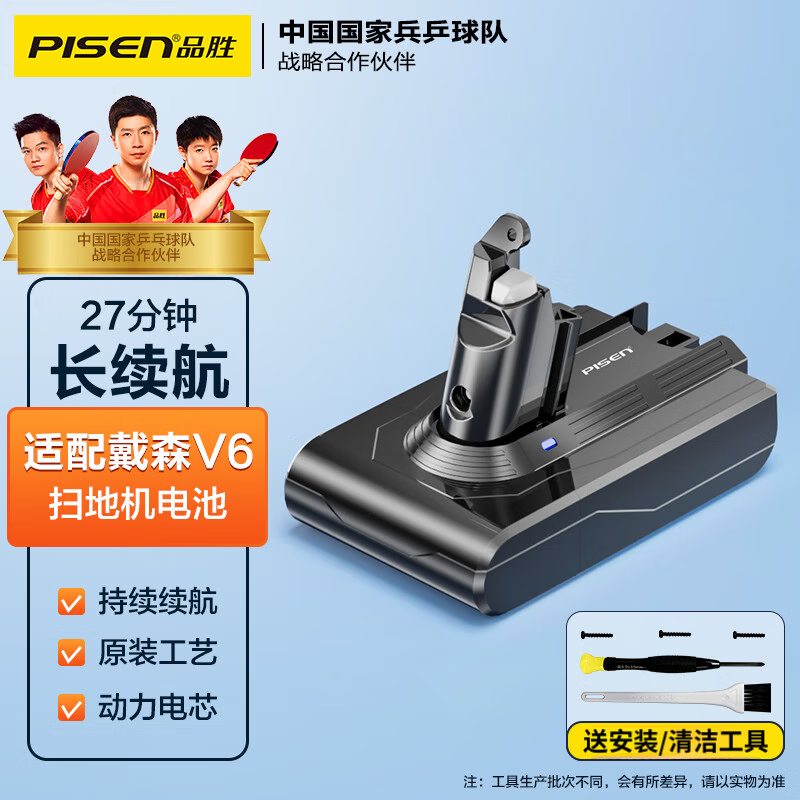 品胜(PISEN)戴森Dyson吸尘器V6通用锂电池 适用DC59/59/61/62/72/74/SV03/04/05/06价格:219.00元!