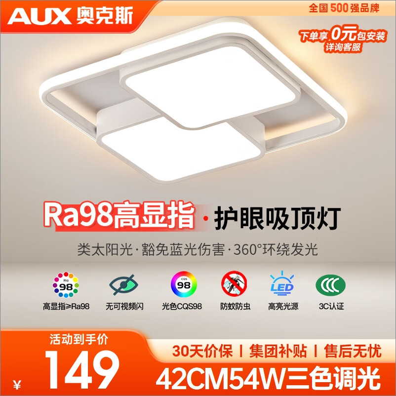 奥克斯(AUX)吸顶灯led卧室灯具客厅灯饰书房阳台灯薄款北欧现代简约ZH-54WS-G价格:212.85元!