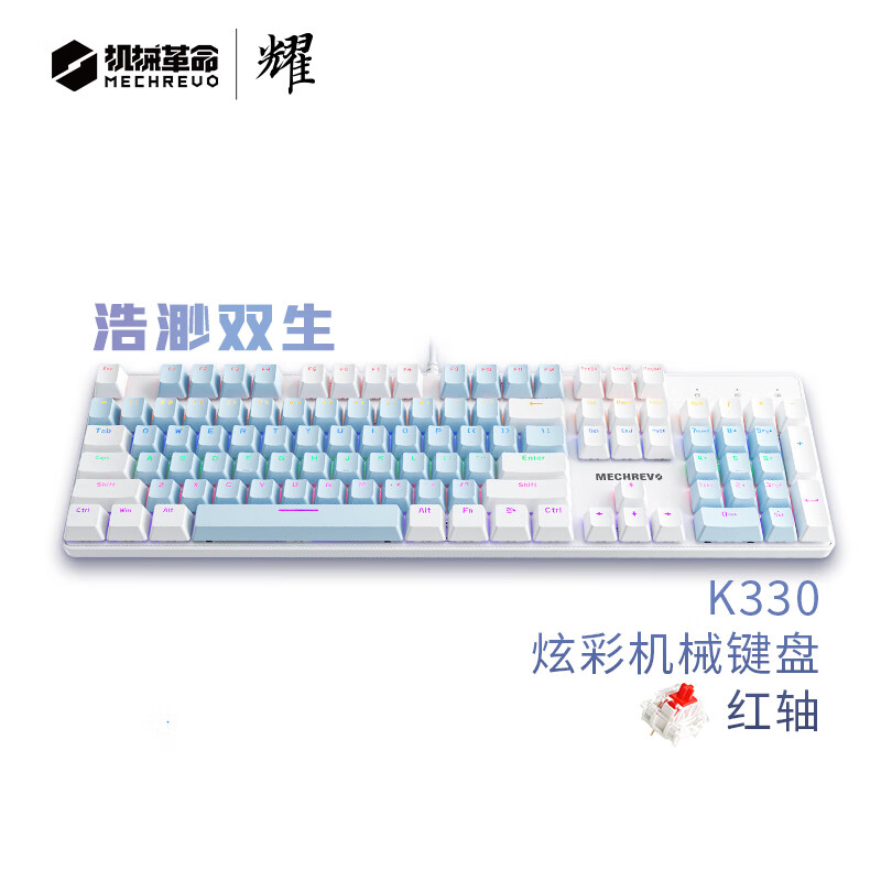 机械革命 耀·K330机械键盘 有线键盘 游戏键盘 104键混彩背光键盘 全键无冲 电脑键盘 白蓝色 红轴价格:139.00元!