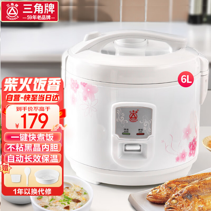 三角牌(Triangle)电饭煲 家用智能大容量蒸米饭锅煮饭锅煲粥不粘西施煲白色 5-8人用 6L价格:179.00元!