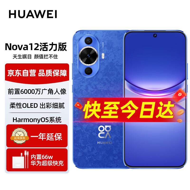 华为HUAWEI nova 12活力版 6.88mm超薄潮美直屏前置6000万超广角拍照 512G 12号色【赠1年延长保】价格:2299.00元!