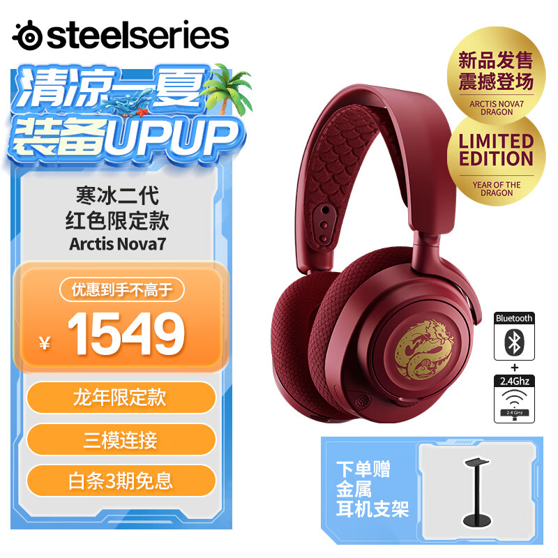 赛睿(SteelSeries)Arctis寒冰Nova7 红色限定款 电竞游戏耳机 头戴式 无线蓝牙三模连接吃鸡神器听声辨位降噪麦克风价格:1549.00元!