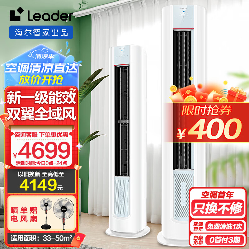 Leader空调立式海尔智家客厅大3匹柜机家用新一级能效变频节能冷暖自清洁空调KFR-72LW/03LKB81TU1[家电]价格:5099.00元!