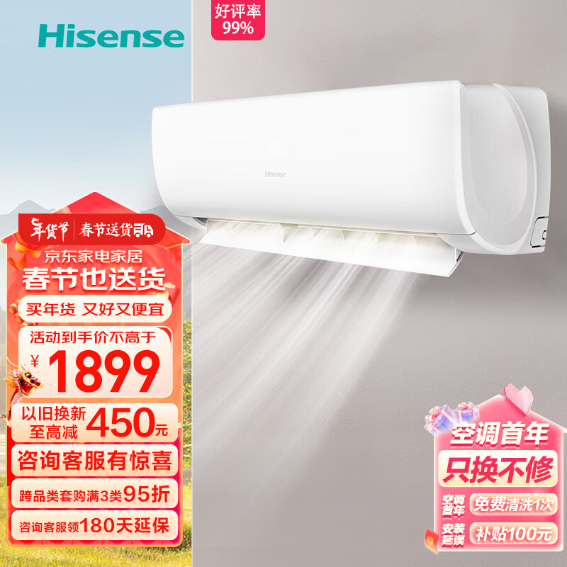 海信(Hisense)大1匹 速冷热 新三级能效 一键息屏节能自清洁冷暖空调大一匹壁挂式卧室空调挂机KFR-26GW/E25A3价格:1899.00元!