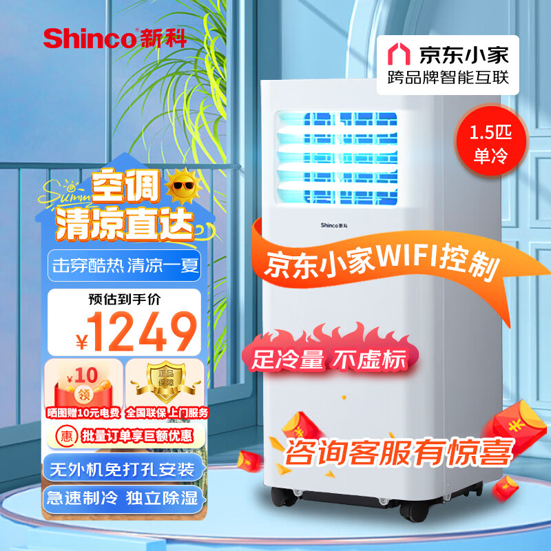 新科(Shinco)移动空调大1.5P 京东小家智能生态 家用空调一体机免排水立式免安装出租房小空调KY-32/KW价格:1249.00元!