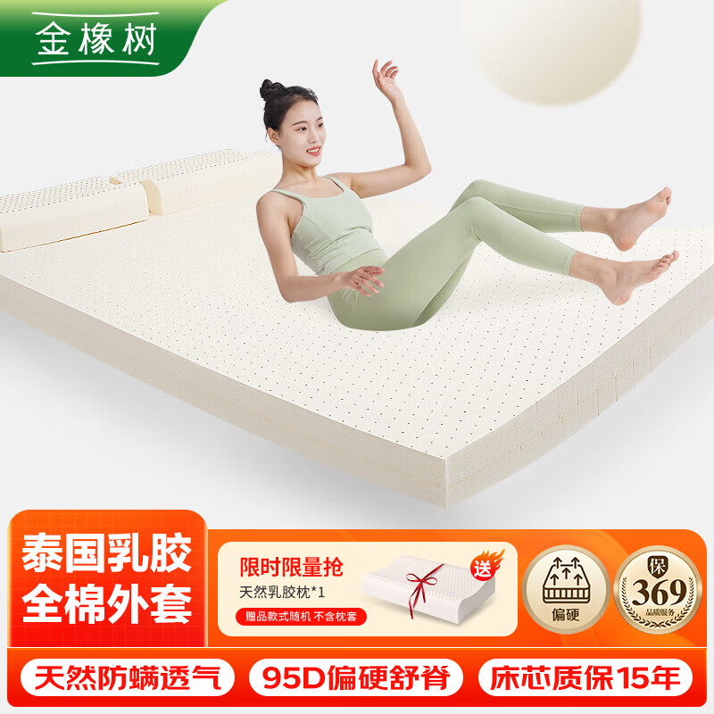 金橡树床垫 泰国进口天然乳胶床垫子榻榻米橡胶单人床垫加硬云梦95D价格:642.00元!