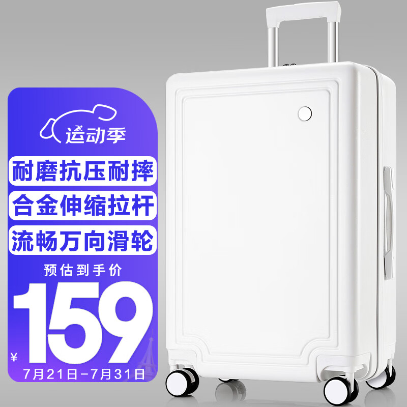 B.L.B.L行李箱拉杆箱高颜值端旅行箱包密码箱男女大容量皮箱子24英寸白色价格:159.00元!