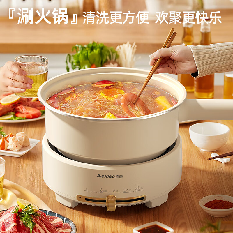 志高(CHIGO)电火锅专用锅电煮锅电蒸锅电炒锅 分体式电热锅 家用电锅多功能锅 YK-DHG12A 配蒸笼价格:129.00元!