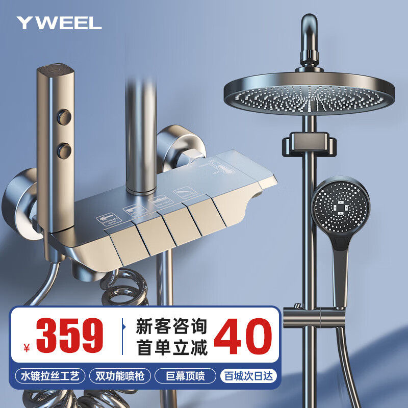 YWEEL 淋浴花洒套装枪灰色恒温钢琴花洒增压自洁喷淋精铜花洒价格:399.00元!