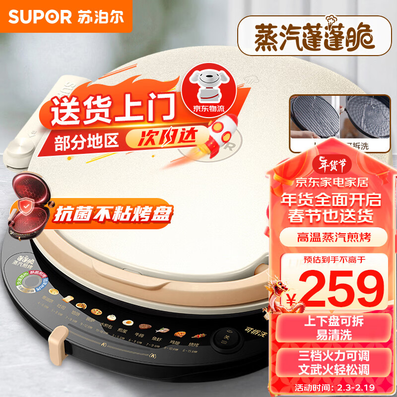 苏泊尔(SUPOR)电饼铛 电饼档 家用双面加热大火力 上下可拆洗 煎饼锅 烙饼锅早餐机多功能蒸汽煎烤机 JD30RQ828价格:259.00元!