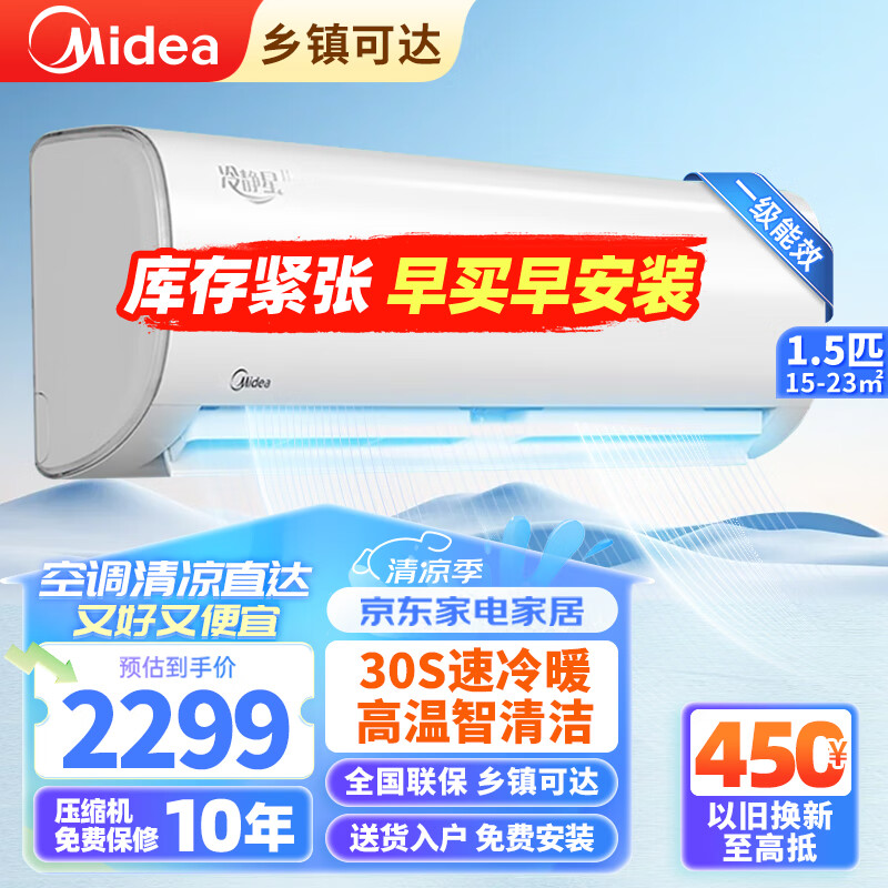美的空调 1.5匹 冷静星二代 新一级能效 变频冷暖 空调挂机 智能家电 KFR-35GW/BDN8Y-PH200(1)A 智选价格:2399.00元!
