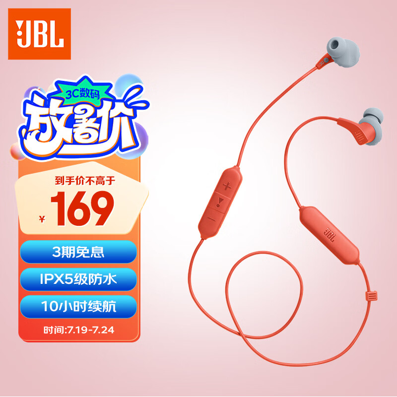 JBL Run BT2 颈挂式运动无线蓝牙耳机入耳式跑步登山骑行磁吸防丢游戏音乐耳机 红色价格:299.00元!