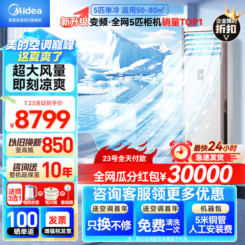 美的(Midea)中央空调5匹柜式空调 5p立式商用柜机 单冷变频新能效380V LF-120LW/BSN8Y-PA401(B3)A包5米铜管价格:8799.00元!