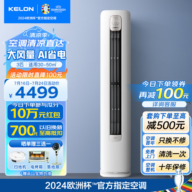 科龙空调3匹新一级能效变频节能省电速冷暖防直吹远距离送风家居智能客厅柜机KFR-72LW/QS1-X1价格:4499.00元!