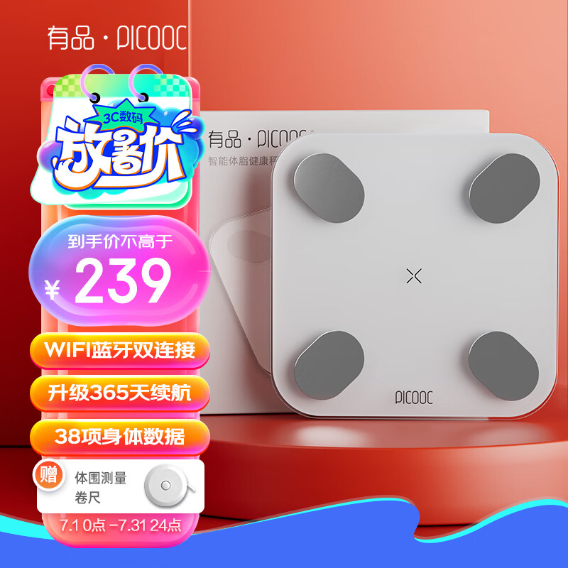 PICOOC有品智能体脂秤电子体重秤家用高精准人体健康脂肪称蓝牙wifi连接BigPro-W送男女友爸妈生日礼物价格:239.00元!