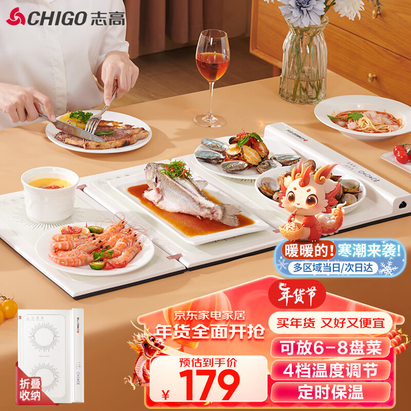 志高(CHIGO)暖菜板 饭菜保温板热菜板 加热桌垫菜板 智能折叠暖菜板 4档温控 72*40CM方形 ZG-86价格:209.00元!