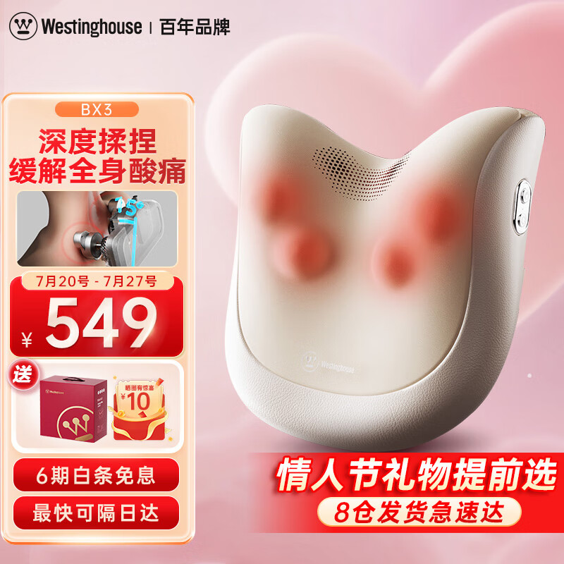 西屋(Westinghouse)美国西屋BX3腰部按摩器肩颈按摩枕腰枕靠垫家用热敷全身七夕情人节按摩生日礼物送老婆女友可可白价格:609.00元!